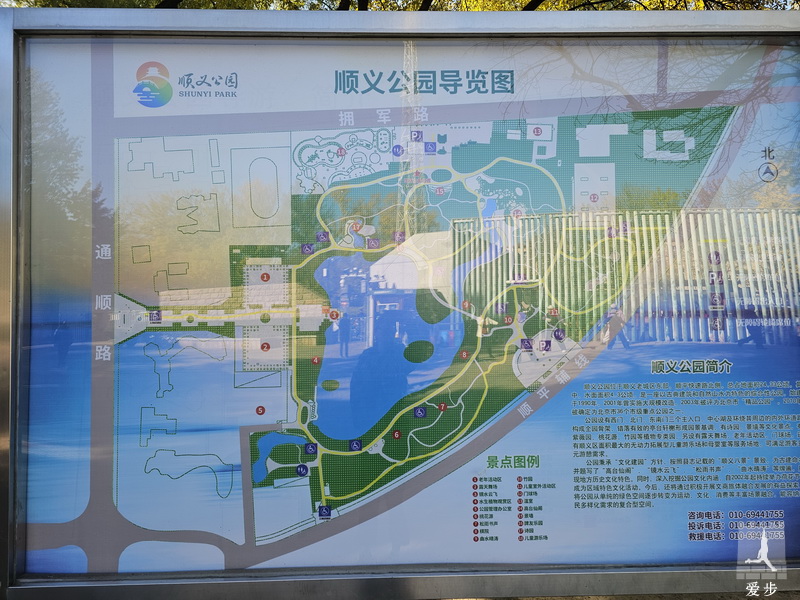 순의공원(顺义公园)은 베이징시 순의구 도심지역에 위치하며, 총면적 24.33ha 중 수역면적 4.3ha, 녹화율 83.41%로 종합공원 유형이며 베이징시 1급 공원으로 연중 개방시간은 6:00-22:00이며 입장료는 무료이다.