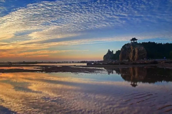 베이다이허 거즈워 관광지 鸽子窝景区 새벽에 작은 통을 들고 바다로 나가면, 모래게가 노을 속에서 가로질러가며, 얕은 바닷물이 하늘의 거울이 된다. 응각정에 올라 멀리 철새들의 이동 모습을 바라보면, 가을에는 새들이 은하수처럼 하늘로 날아오른다.